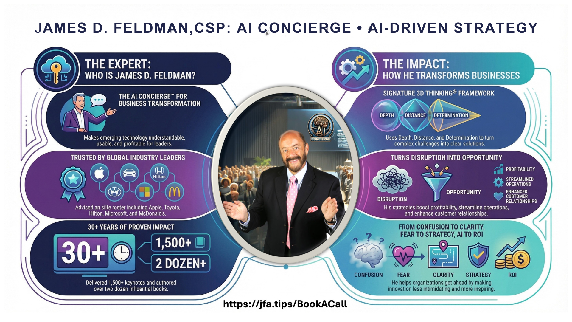 James Feldman, CSP is the AI Concierge™ for organizations, association leaders, hospitality professionals, and meeting planners who are done being confused and ready to start winning. As founder of SOAR Academy and publisher of the AI Sauce Newsletter, James doesn’t lecture about technology — he shows you exactly how to use the AI you may already own to hit the business goals that actually matter.